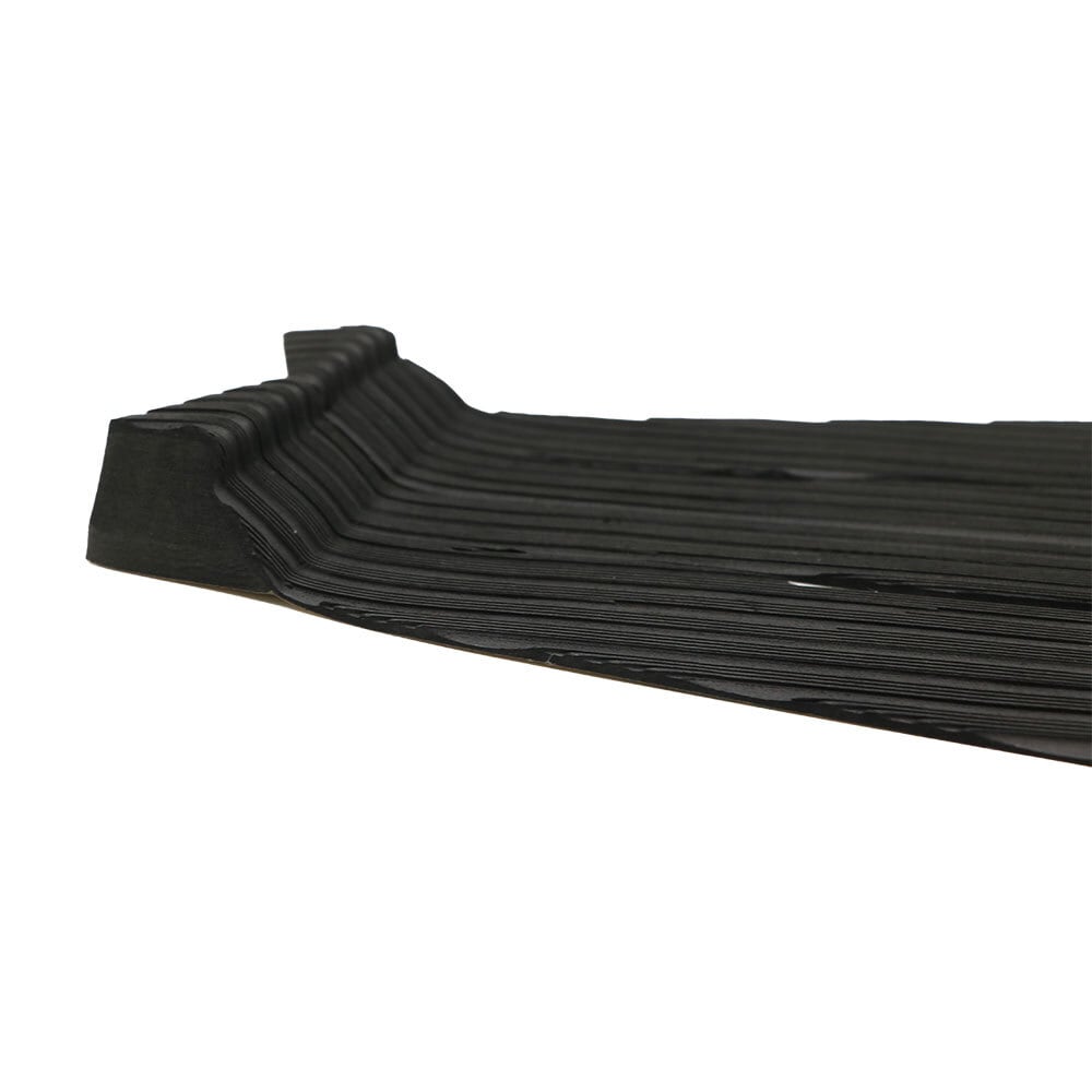 2ピースで幅の広いボードにも対応でき、切れ込みのデザインは波に乗っている時のダウンザラインとハイラインをイメージしました。
